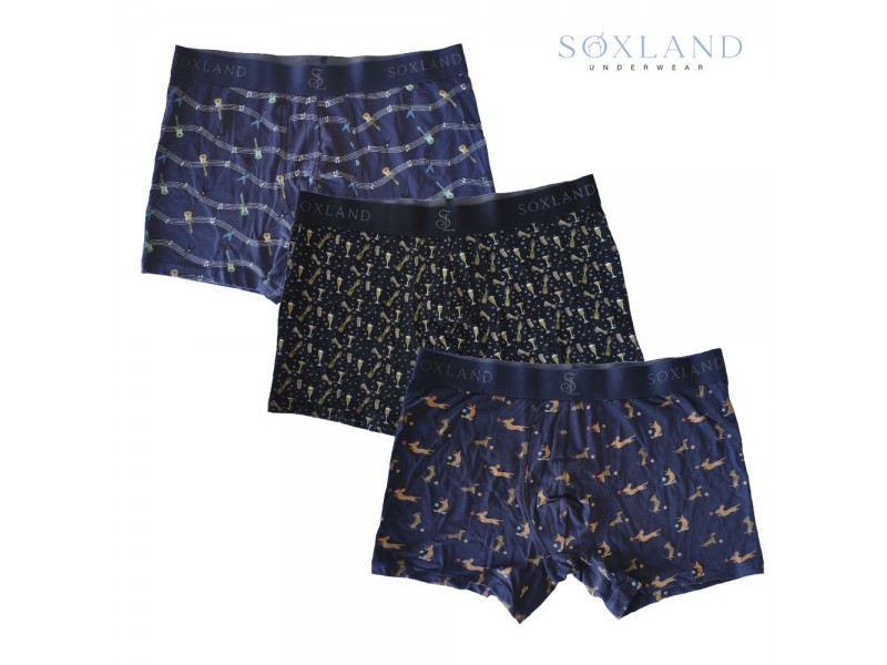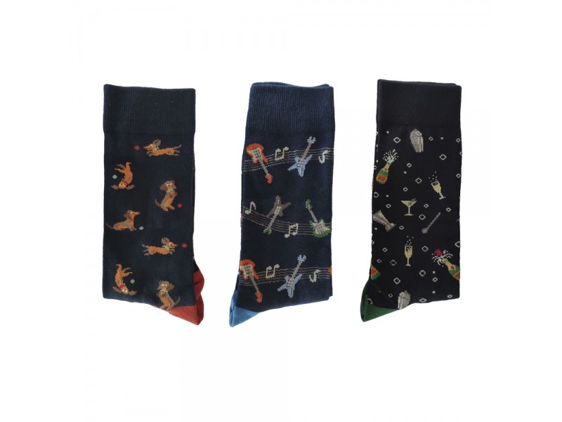 Pack Boxer y Calcetin Cro. algodon estampado fantasia. 95% Algodon, 5% Elastano. Presentacion caja con colgador.