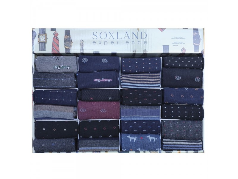 Calcetin Cro. Algodon Calido Fantasia. Remallado a Mano. Puño Confort Sin Presion. 80% Algodon - 18% Poliamida - 2% Elastano. Expositor de 24 Pares. Tª 40/45. Caja Expositora de Mostrador.