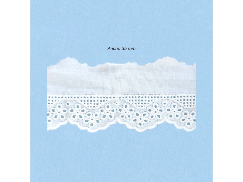 Bordado batista 100% Algodon Ancho 35mm. Fabricacion nacional gran calidad. (Metros)