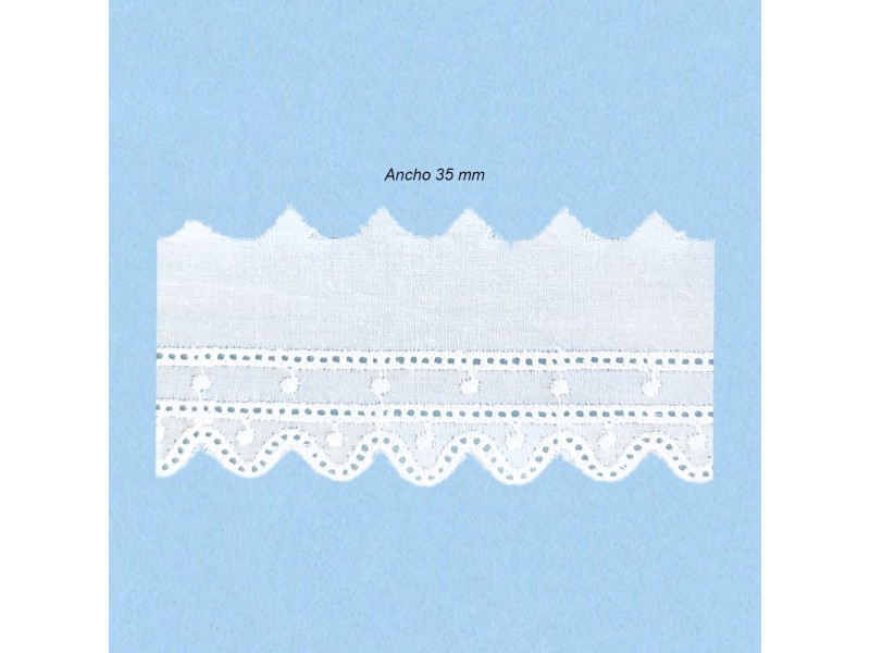 Bordado batista 100% Algodon Ancho 35mm. Fabricacion nacional gran calidad. (Metros)