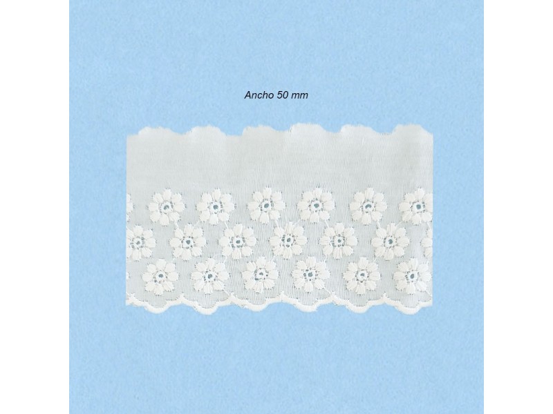 Bordado batista 100% Algodon Ancho 50mm. Fabricacion nacional gran calidad. (Metros)
