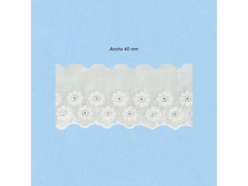 Bordado batista 100% Algodon Ancho 40mm. Fabricacion nacional gran calidad. (Metros)