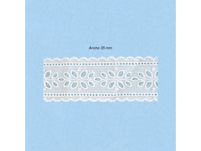 Bordado entredos batista 100% Algodon Ancho 35mm. Fabricacion nacional gran calidad. (Metros)
