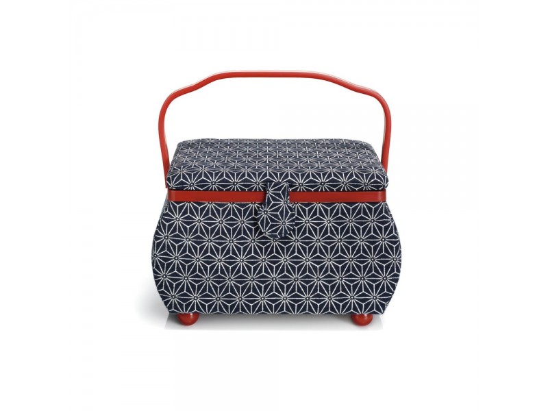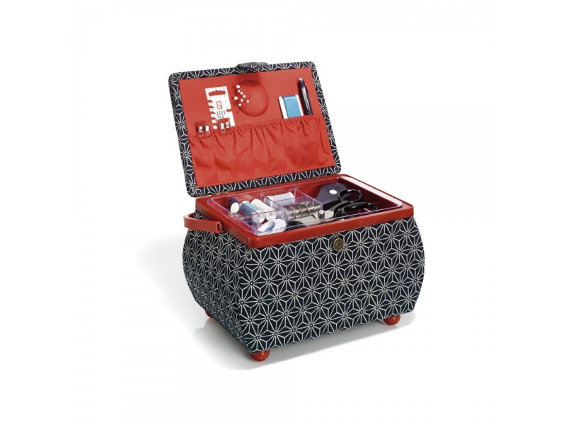 Costurero L forrado tejido estampado Kyoto, bandeja organizadora, acerico y bolsillos interiores, cierre magnetico y asa. Dimensiones: 30x20x18cm. (Unidad)