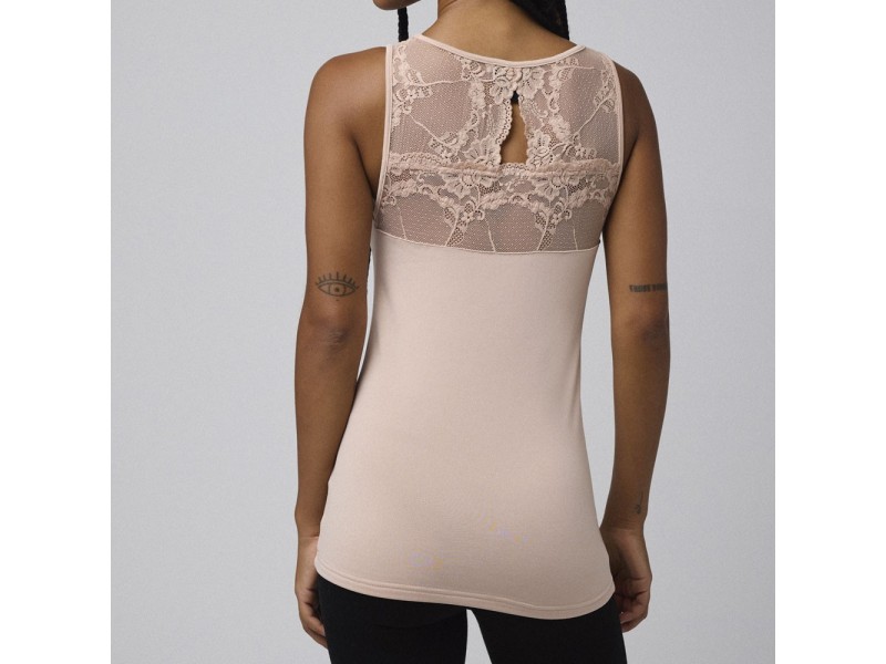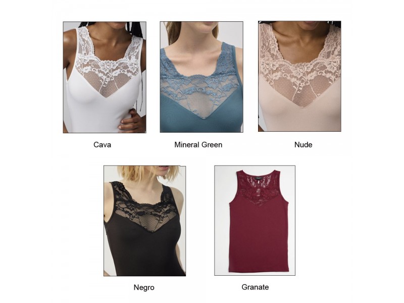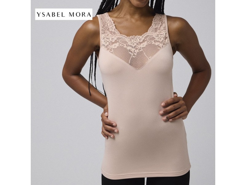 Camiseta sin mangas para mujer Isabel Mora con cuello redondo blonda con encaje, termica, comoda y con afelpado interior. Basicos para tu armario.92% Poliester, 8% Elastano