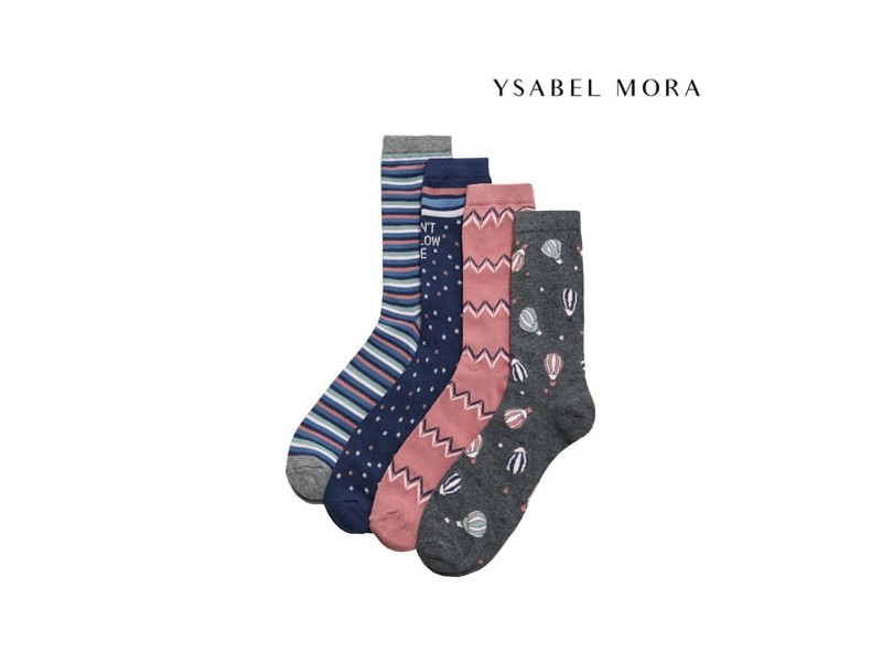 Calcetin Sra. Fantasia. Puño Antipresion. 73% Algodon - 25% Poliester - 2% Elastano. Tª 36/41. Caja Expositora de 24 Pares.