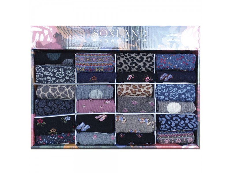 Calcetin Sra. Algodon Calido Fantasia. Remallado a Mano. Puño Confort Sin Presion. 80% Algodon - 18% Poliamida - 2% Elastano. Expositor de 24 Pares. Tª 35/40. Caja Expositora de Mostrador.