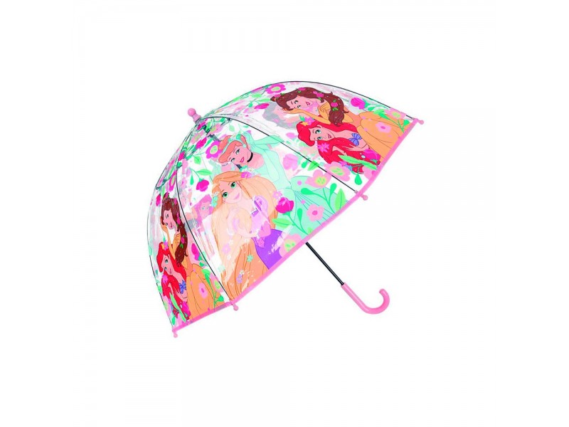 Paraguas infantil transparente Princesas 100% PE apertura automatica 72cm.