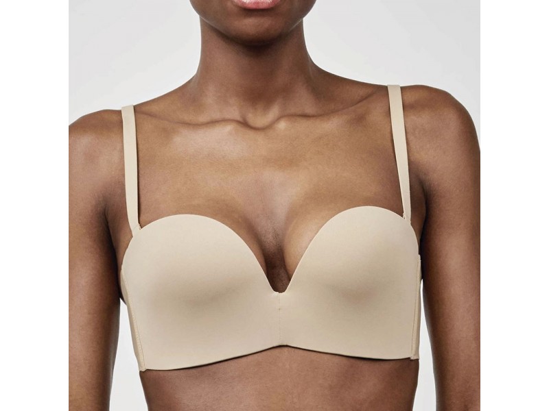 Sujetador sra. push up sin aros, escote extremo, tirantes desmontables y silicona en espaldillas para mayor sujeccion. Realizado en 84% poliamida, 16% elastano. Linea Basic 3.