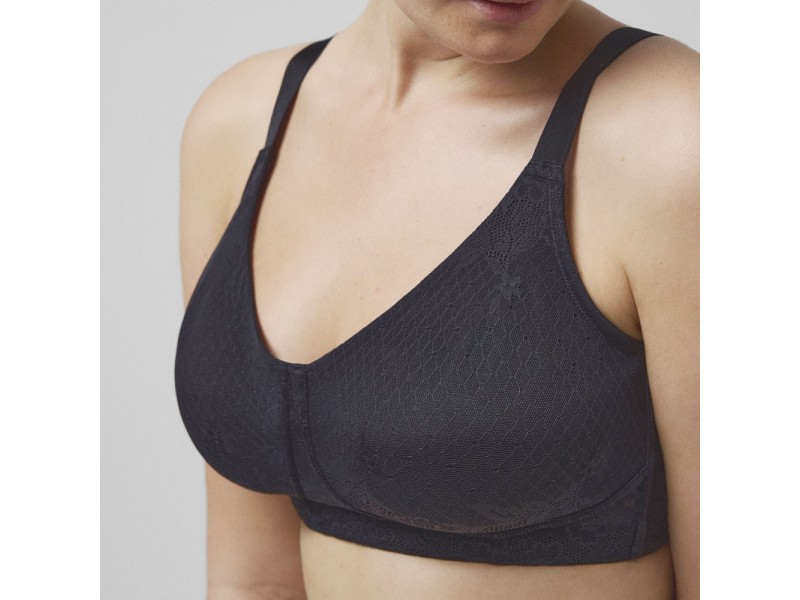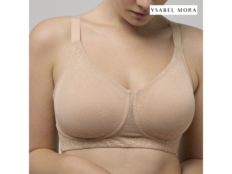 Sujetador reductor sra. capacidad copa D sin relleno, sin aros, con tirantes anchos y ballenas laterales. Diseño de encaje. Coleccion Special You. 84% Poliamida, 16% Elastano