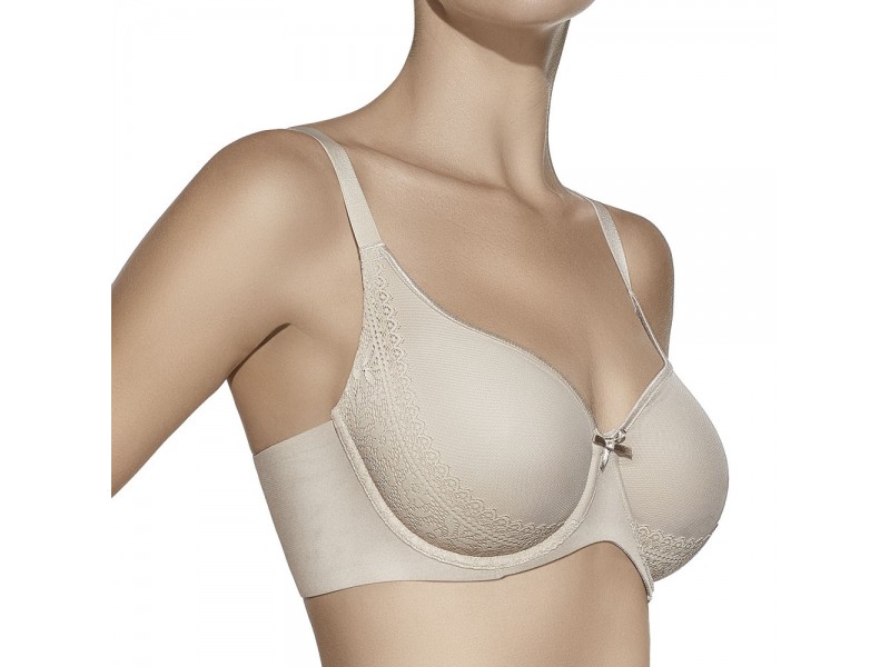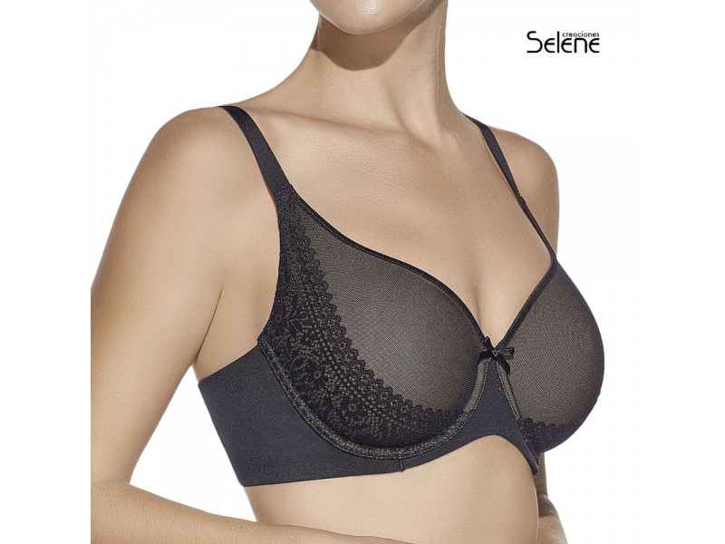 Sujetador sra. con aros, sin relleno. Combina encajes y capas de tul superpuesto proporcionan una adecuada sujecion al mismo tiempo que disimulan las irregularidades del costado